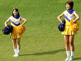 スタートホールでは、現役の明治大学応援団のチアーリーダによる応援が繰り広げられました。