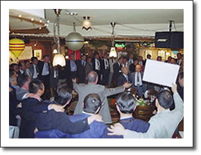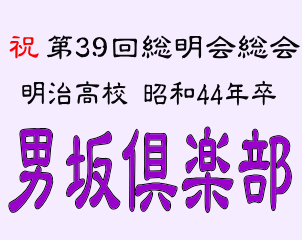 男坂倶楽部は、毎年1回の総会を開催しております。 今年度は、5月10日の土曜日に両国のパブレストランにて5時30分より9時30分という長時間に渡り開催しました。参加人数は、会員50名、恩師として栗原先生、村野先生、雨宮先生をお招きしまして盛大に開催することが出来ました。 今回は、特別公演として女性演歌歌手によるステージ、多くのコンパニオンによる接待等で大いに盛り上がりました。 また今年の総明会ゴルフコンペでは、団体優勝をすることが出来、個人賞も含め多くの賞品を頂戴することが出来ました。 今年の総明会総会は、11月15日(土曜日)浅草ビューホテルで開催されますので男坂倶楽部として同期を多数誘い出席させていただきます。 男坂倶楽部会長 福田 正知 090−3203−3116 写真が必要な場合は、栗田 茂 090−3138−5692 迄連絡願います。 |